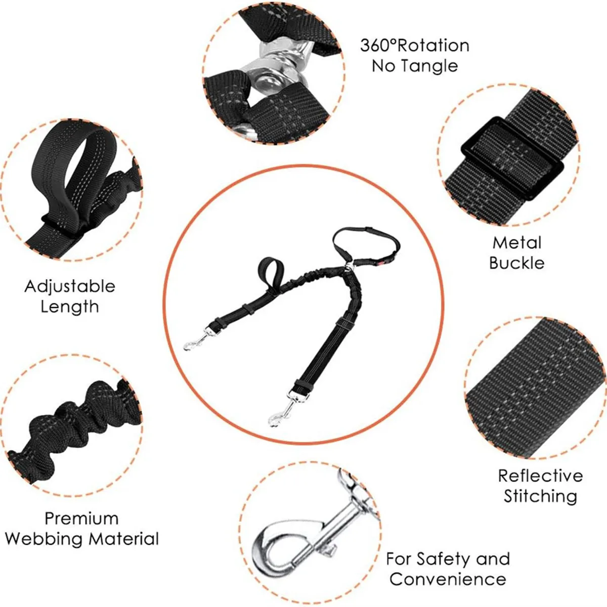 Practical and Multifunctional - The strap could not only be used as a seat belt, hanged on the headrest easily and the rotation metal buckle connects the dog harness or dog collar and also could use with the pet seat cover. It’s not only a pet seatbelt but also a general double leash. Whether it's walking or driving, it gives the dog the safest protection and easy to control 2 dogs.