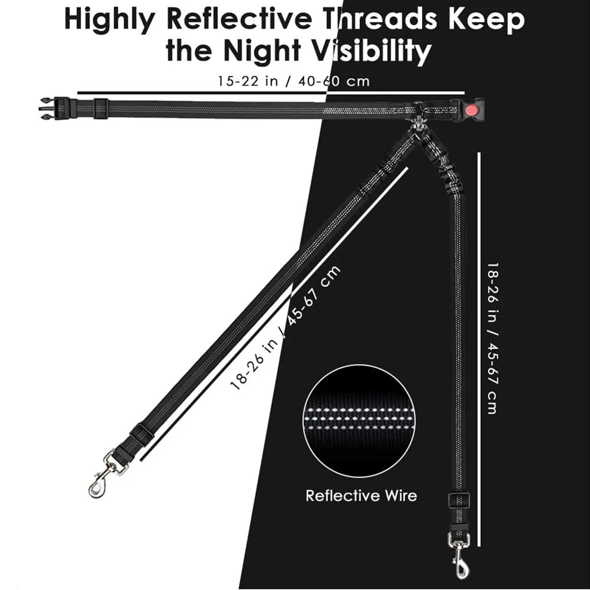 Safety Protection at Night - The reflective stitching on the strap design enhances the visibility in the dark, helping to easily recognize the dog's position in a poorly lit environment or on the car. The dual pet lead also reminds the surrounding vehicles to avoid accidents for your dogs, assuring your dogs’ safe.
